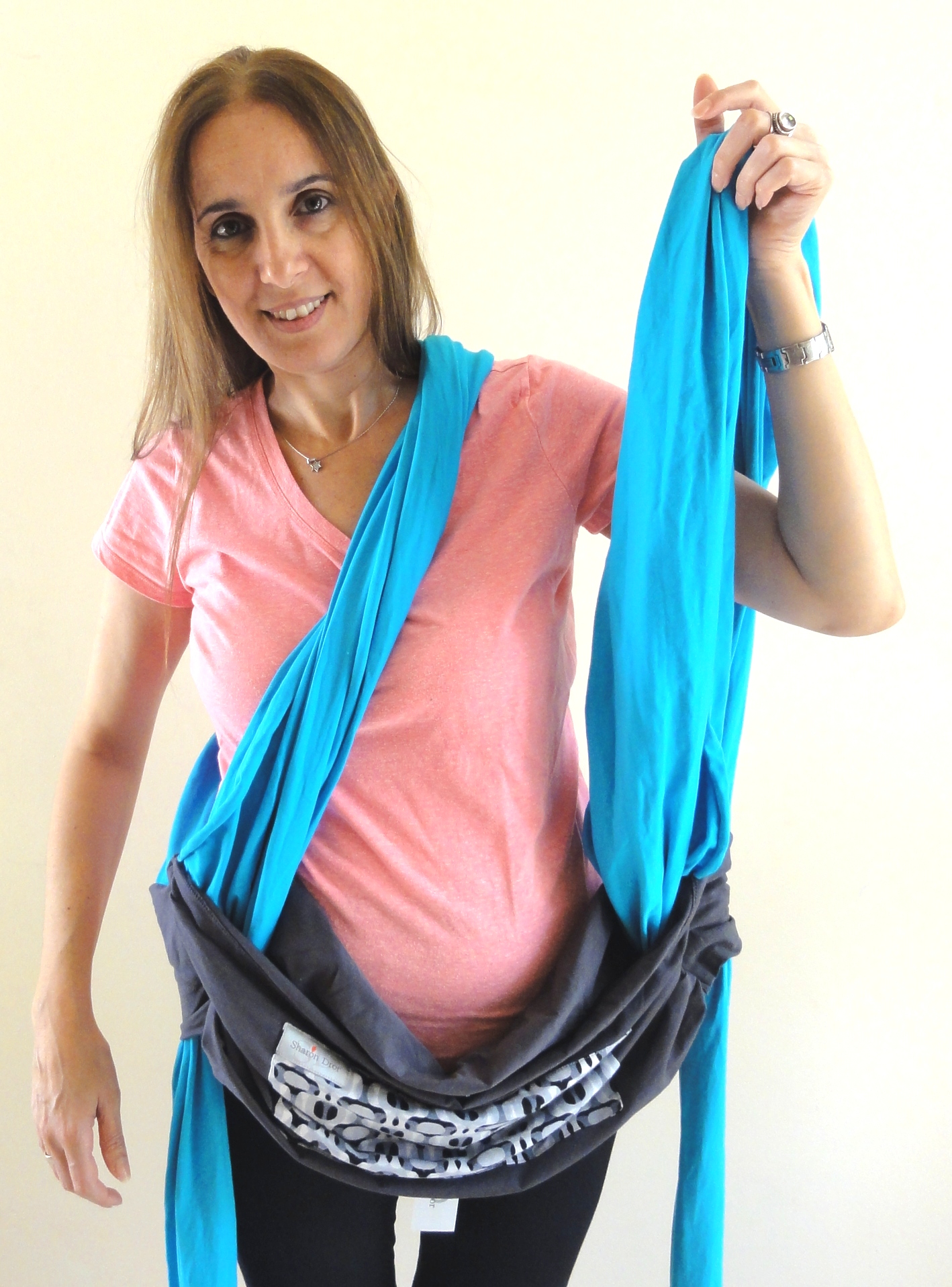 לפתוח את הרצועה הקרובה לגוף, הפנימית, וליצור מעין כיס שפתחו כלפי מעלה, בו ייכנס התינוק.